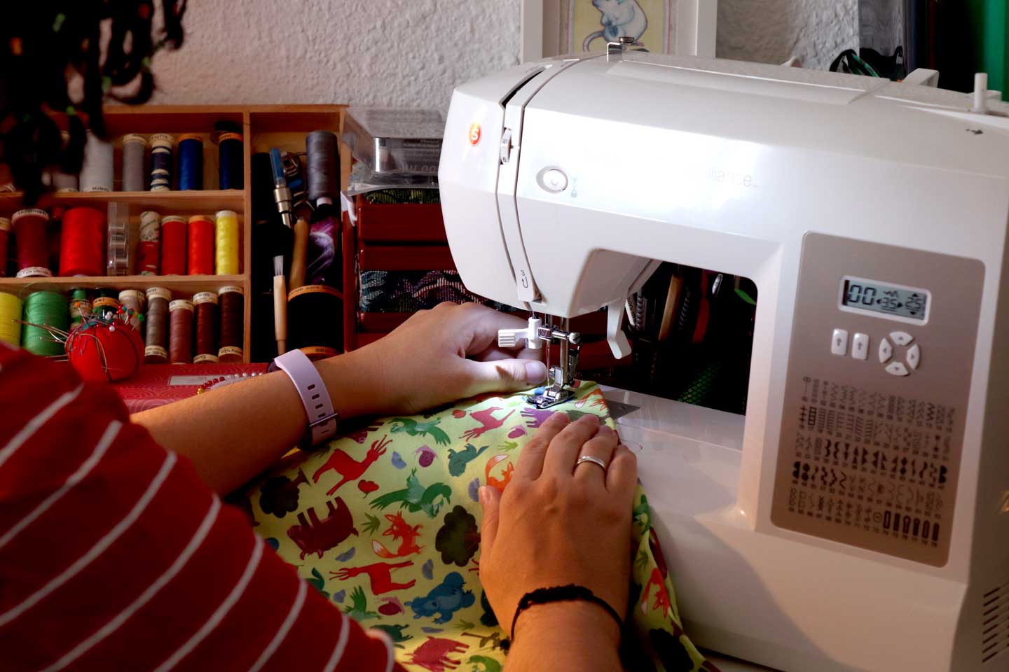 Aboceto sobre papel, termino con el ordenador e imprimo sobre las telas, siempre de algodón orgánico y con las tintas ecológicas. Después me encargo de la confección de las prendas, empaquetarlas, enviarlas, atenderos, llevar las redes sociales y lo que surja.