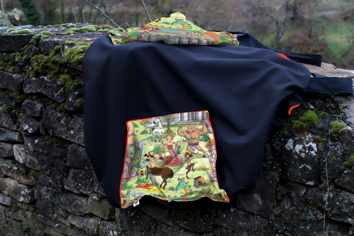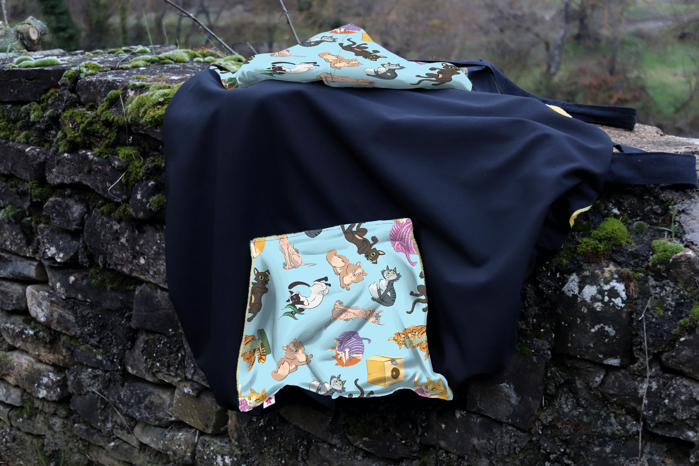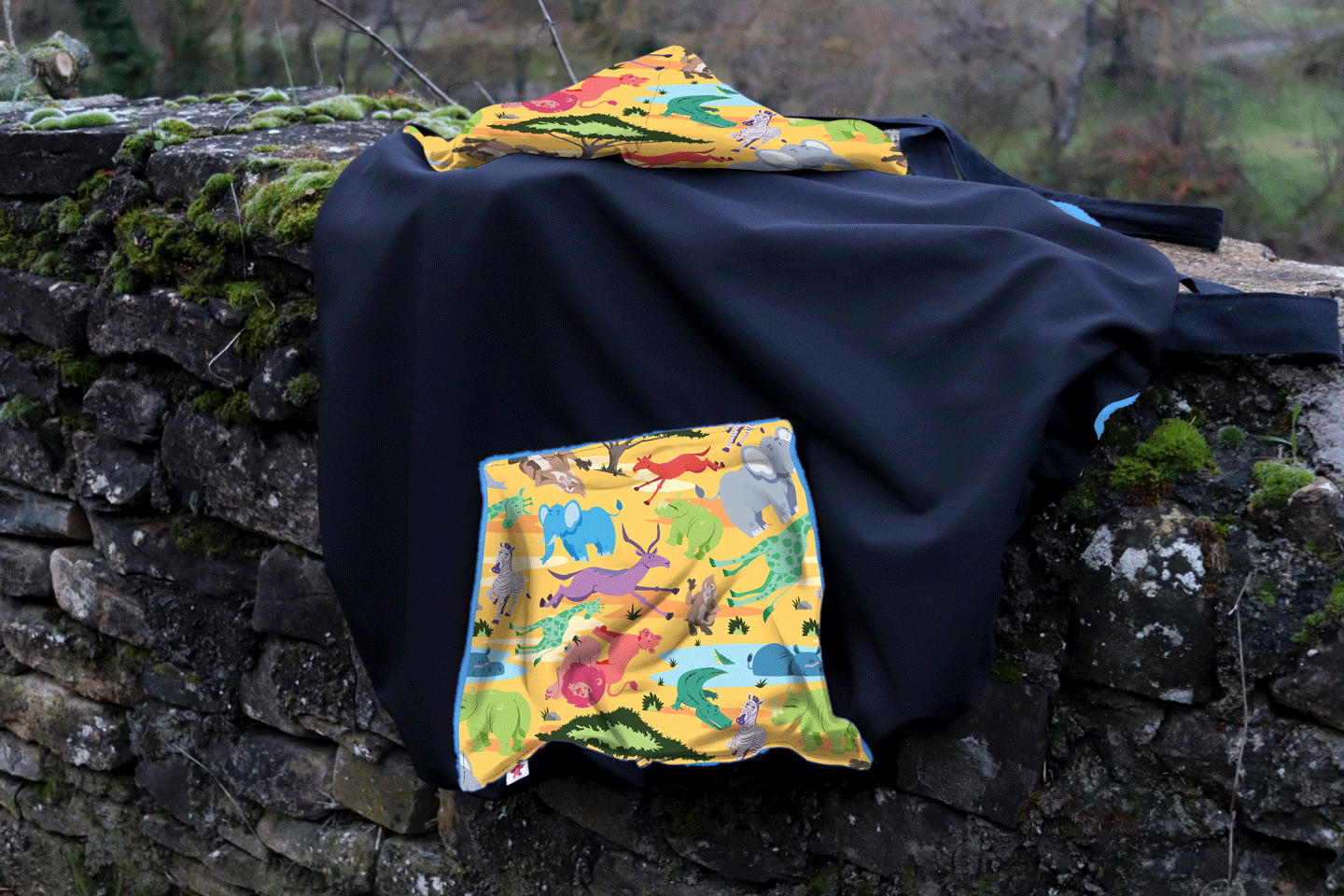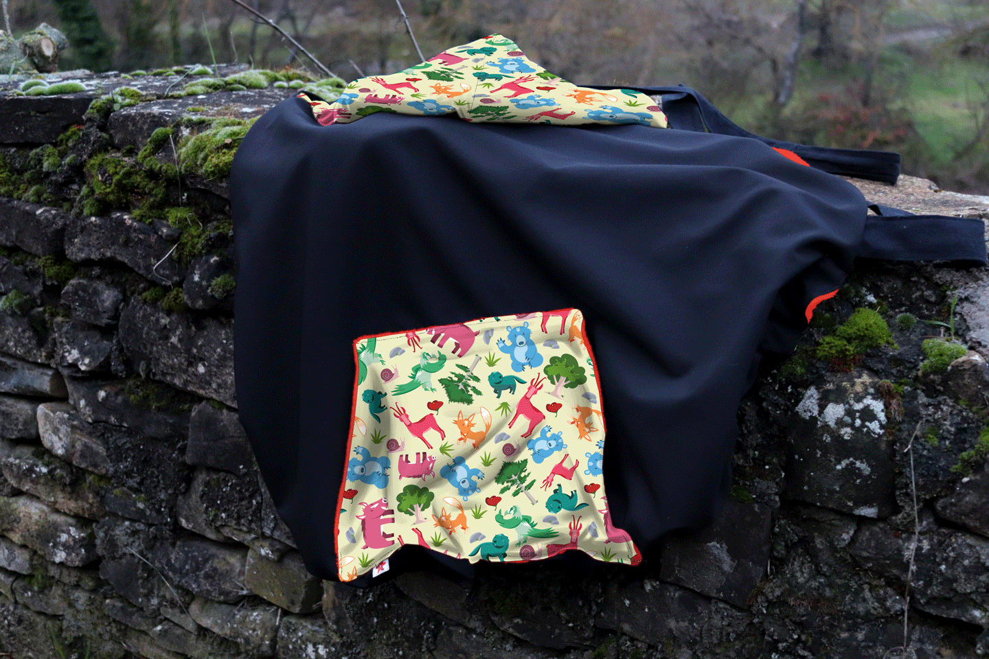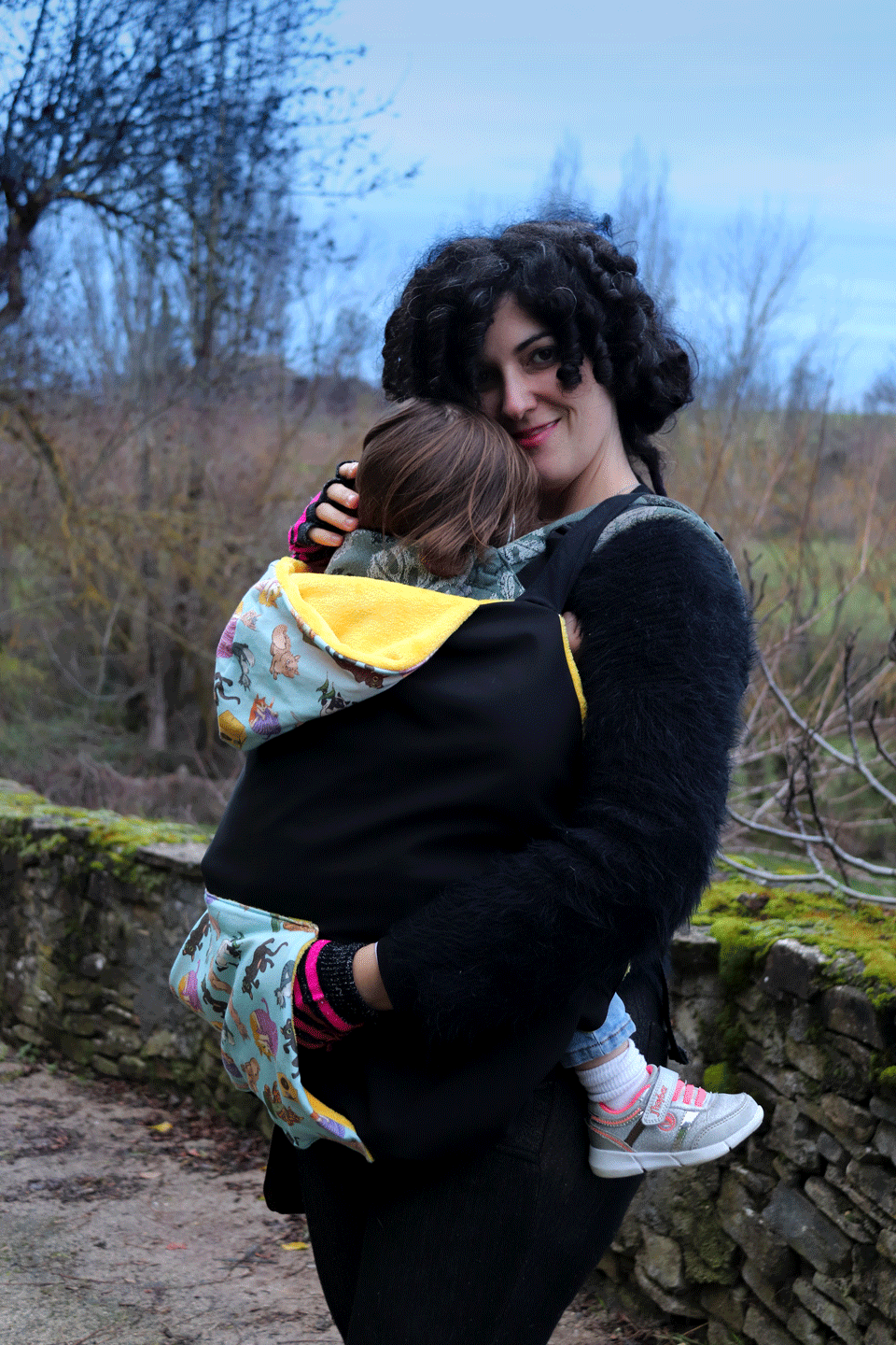 Cobertor de porteo hecho con tela de softshell impermeable y coralina en la parte interna. Perfecto para el frío y la lluvia.