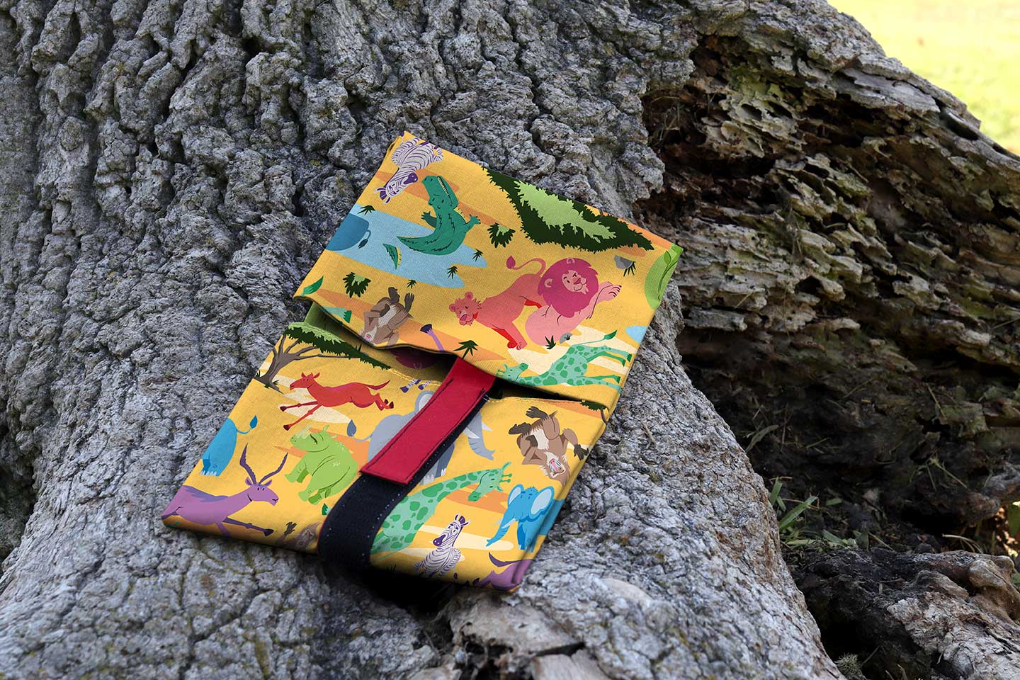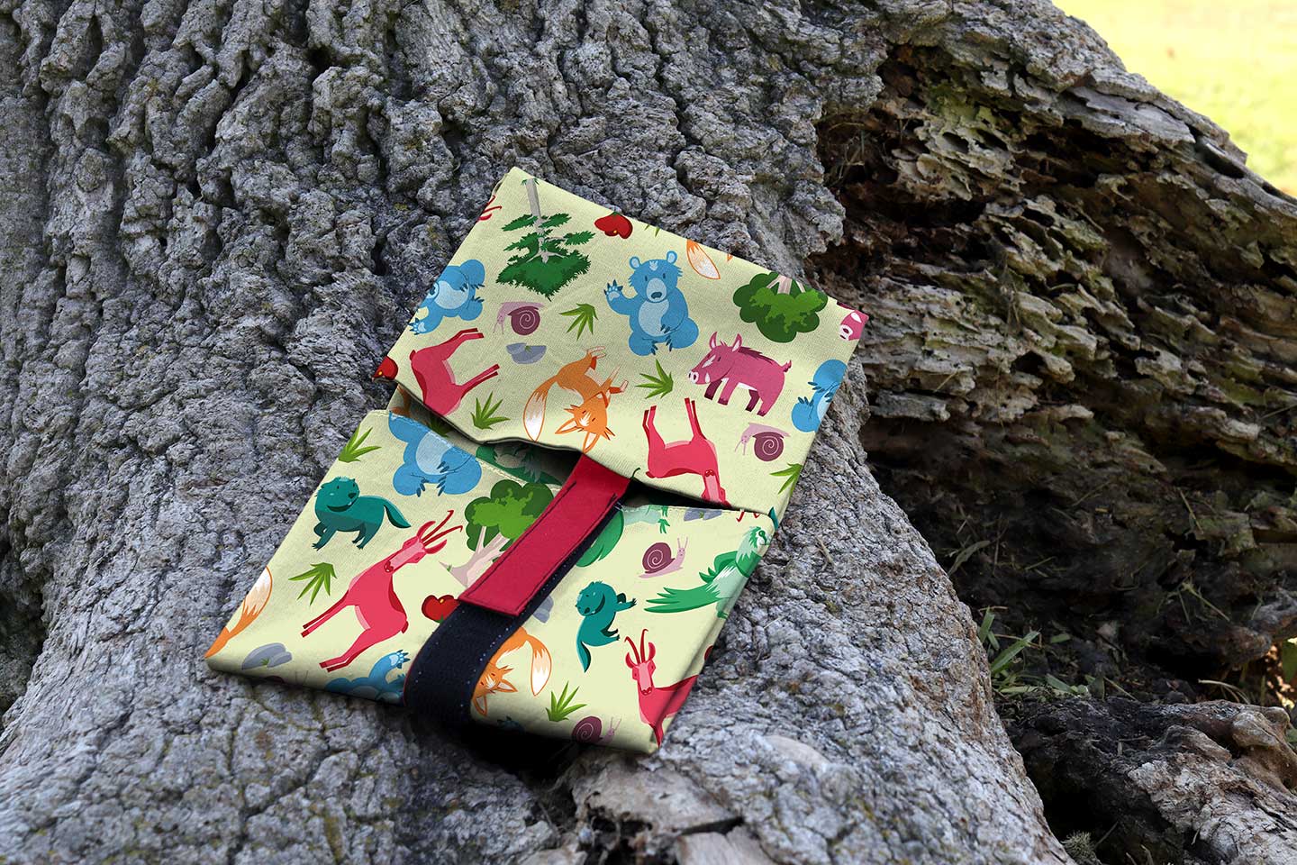 Porta bocadillos muy útil para reducir el impacto en el medio ambiente. Confeccionado con algodón 100% orgánico y plástico alimentario para evitar manchas o fugas.