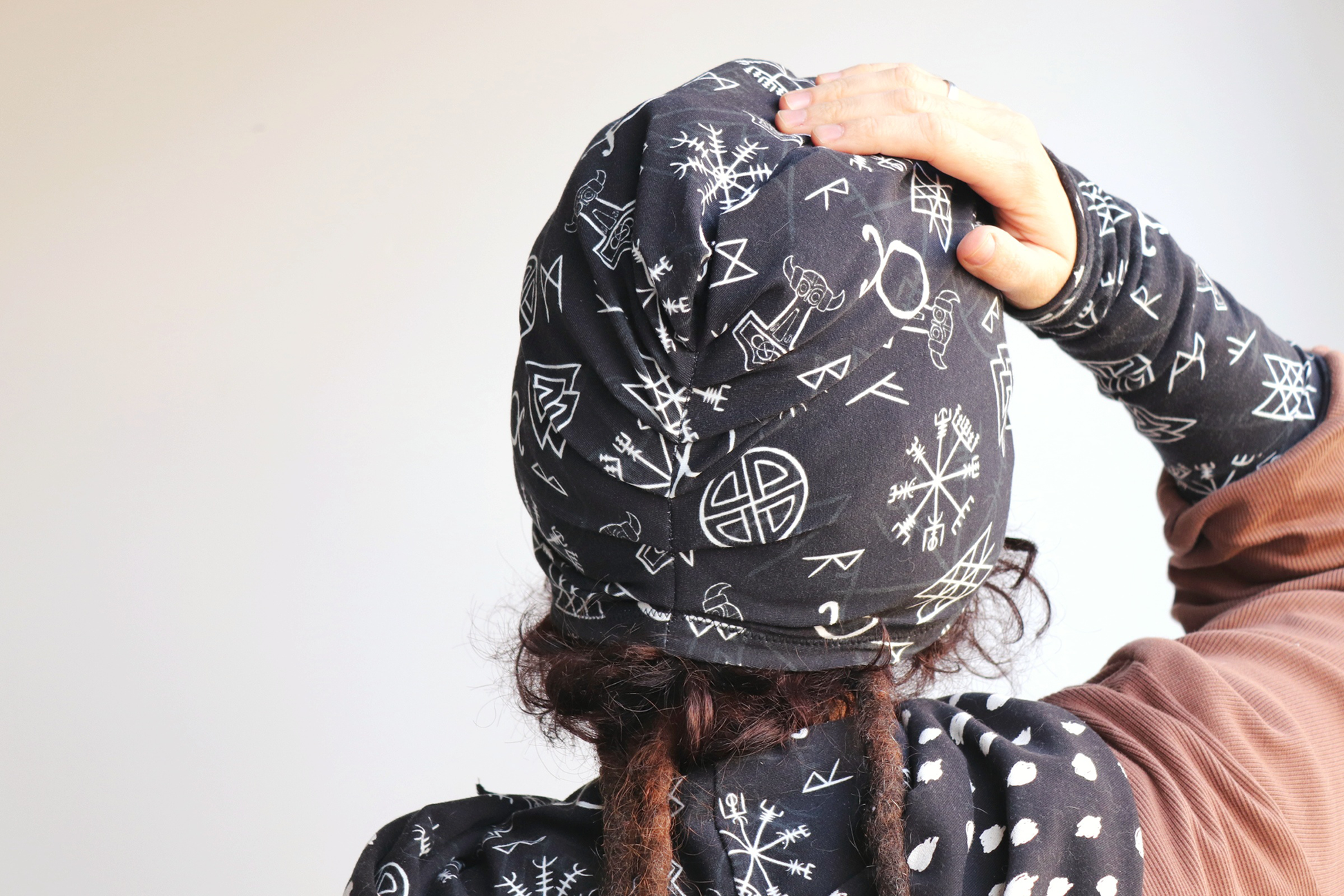 Turbante completo confeccionado con algodón orgánico muy transpirable y cómodo.